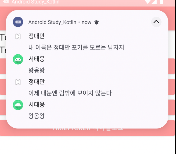messageStyle.addMessage("내 이름은 정대만 포기를 모르는 남자지", System.currentTimeMillis(), person1) // 메시지 내용과 시간을 넣어줌