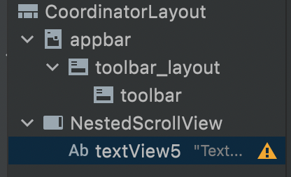 - NestedScrollView 를 잡고 스크롤하면 앱바(안에 툴바)가 접혔다 펴졌다 함 (스크롤 행위 -> / )