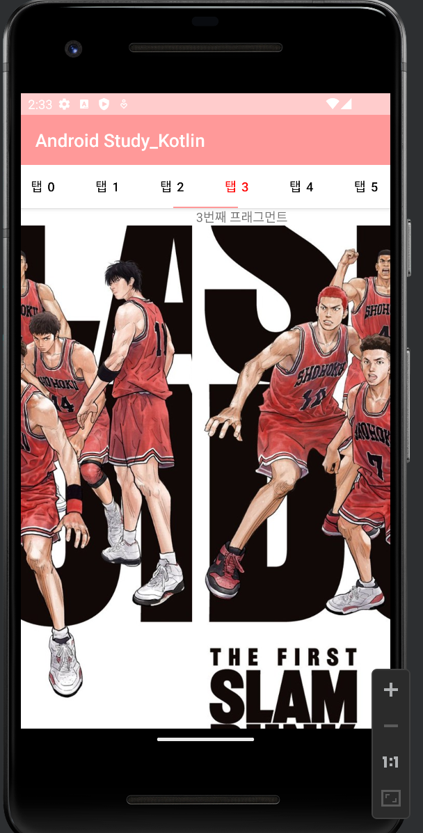 - 탭이 좌우로 스크롤 가능하고 뷰페이저 부분을 좌우로 스크롤해도 탭이 함께 스크롤됨