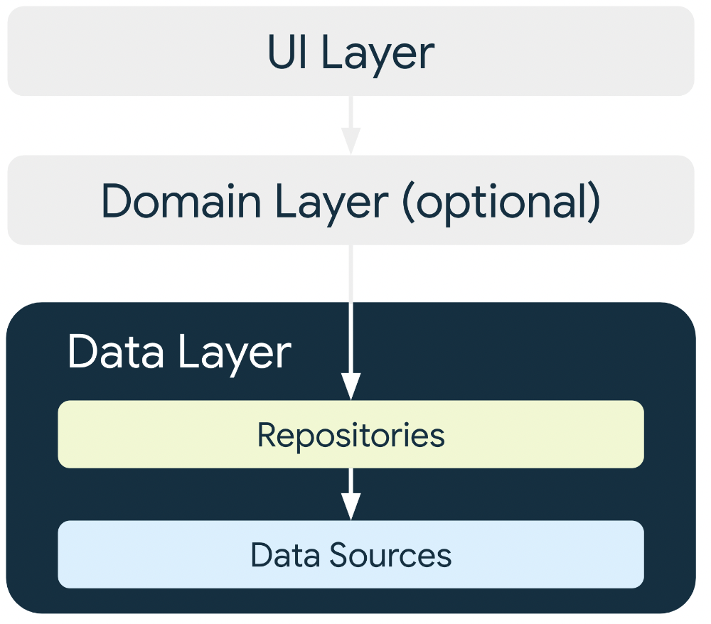 - 반드시 Repository를 통해서만 데이터에 접근해야 한다(UI 레이어나 Domain레이어가 데이터 소스에 직접 접근해서는 절대 안 됨!!)