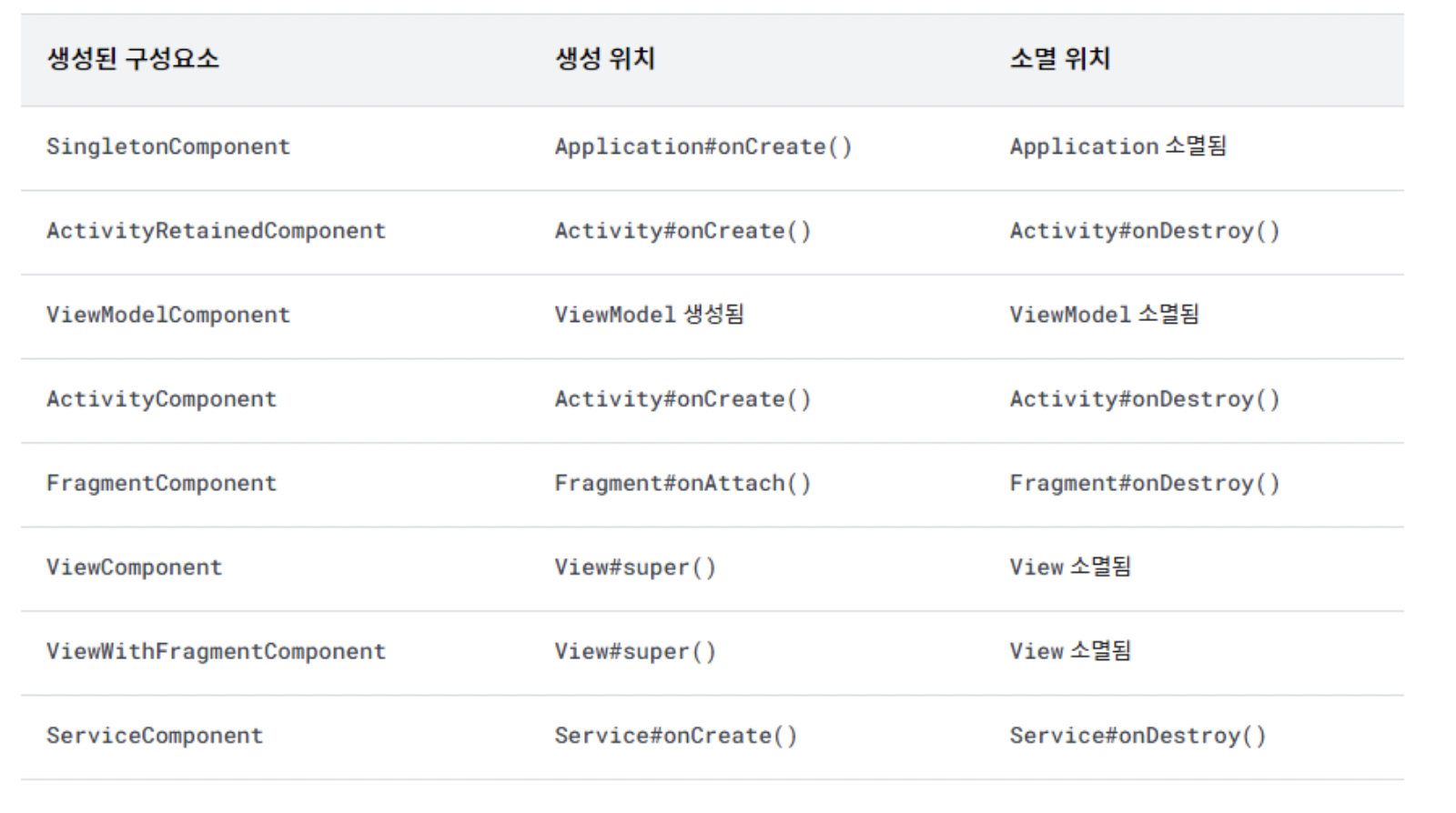 - SingletonComponent::class → 해당 모듈이 Application 단에서 사용 가능 (Application 종료시까지 계속 공유)